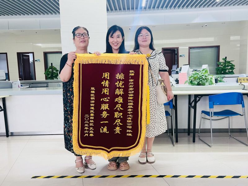 近日,孔女士及其女兒將“解疑答惑耐心細致,輕言慢語(yǔ)如沐春風(fēng)”“排憂(yōu)解難盡職盡責,用情用心服務(wù)一流”兩面錦旗送至勞代公司退休登記部,表示衷心感謝,并對勞代公司的服務(wù)水平大加贊賞。
