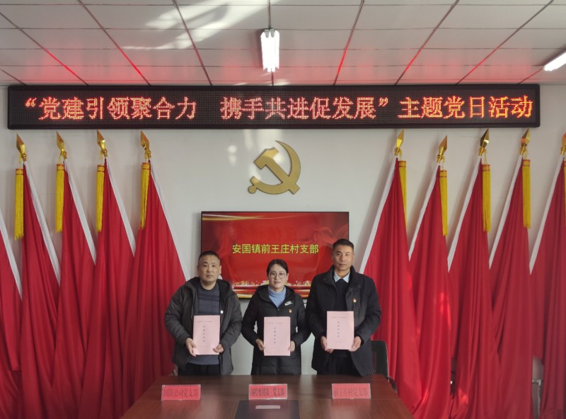 隨后,與會(huì )人員圍繞“村企聯(lián)建”開(kāi)展“微調研”,在前王莊村委會(huì )黨員活動(dòng)室召開(kāi)座談會(huì ),分別介紹國投集團發(fā)展沿革、前王莊村基本情況、國新公司發(fā)展情況等,以“支部聯(lián)盟、活動(dòng)聯(lián)辦、資源聯(lián)享、發(fā)展聯(lián)促”為抓手,著(zhù)力構建“以企帶村、以村促企、優(yōu)勢互補、互惠共贏(yíng)”的發(fā)展新格局。會(huì )上,各方簽署了結對共建協(xié)議。