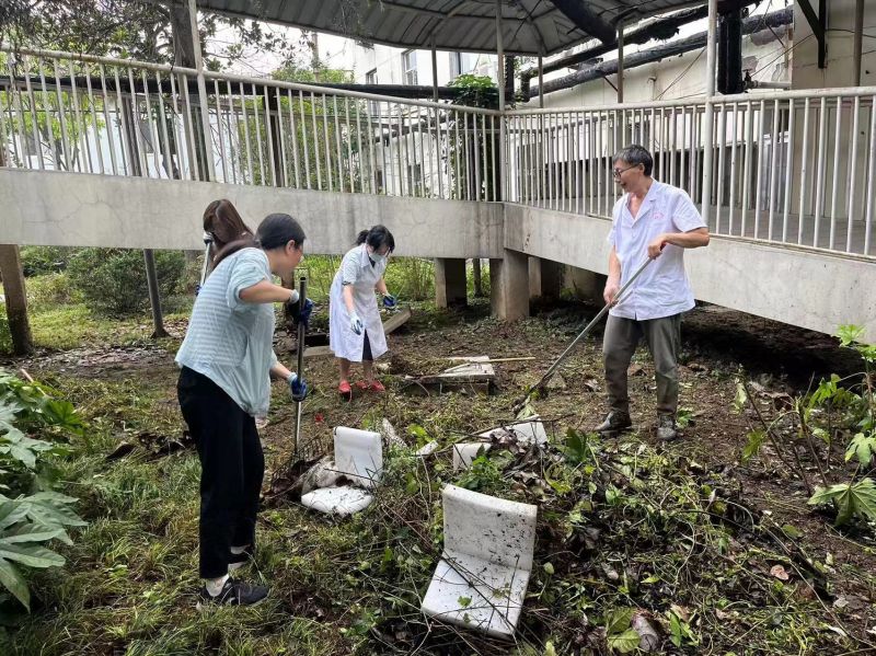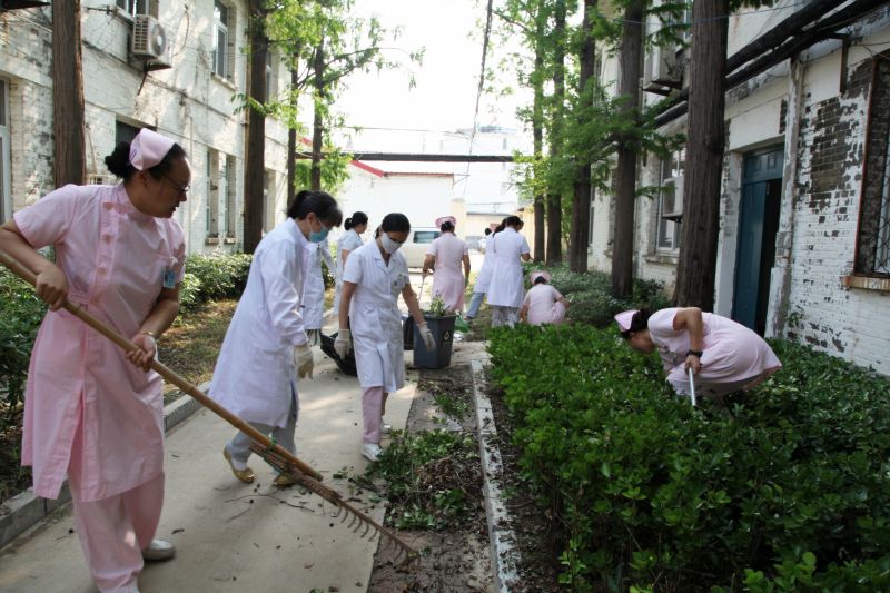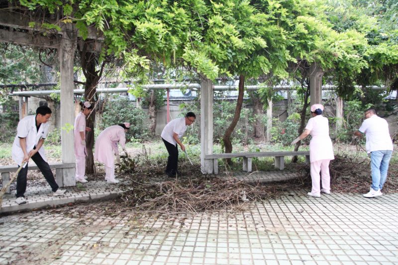 清潔活動(dòng)實(shí)行包干到組。院內各個(gè)綠化區分成26個(gè)區域,由全院各科室分為26個(gè)小組負責,每個(gè)小組設包干院領(lǐng)導和責任人。由于剛剛完成修剪工作,綠化區表面布滿(mǎn)了厚厚的樹(shù)枝及樹(shù)葉,加之連下幾天大雨,地面潮濕,腐爛的樹(shù)葉發(fā)出刺鼻的霉味,給清潔任務(wù)帶來(lái)了不便。