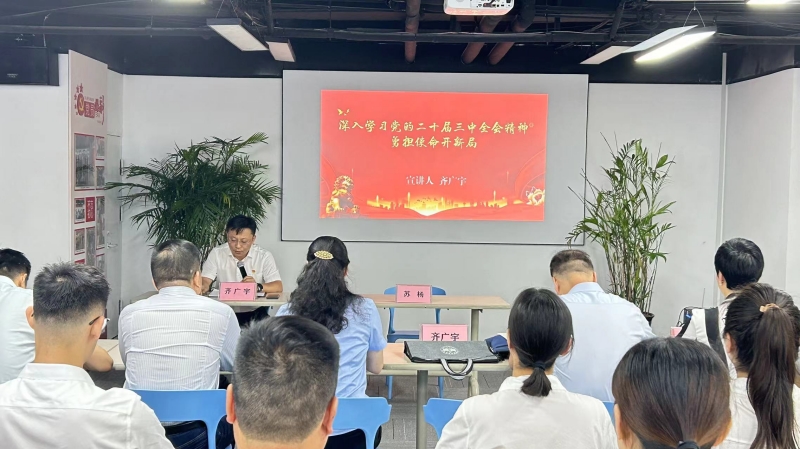 活動(dòng)中,華強資產(chǎn)公司黨總支書(shū)記齊廣宇同志從全會(huì )的重大意義、全會(huì )的主要內容、如何貫徹落實(shí)黨的二十屆三中全會(huì )精神、如何在黨的二十屆三中全會(huì )精神指引下開(kāi)創(chuàng )工作新局面等多個(gè)方面進(jìn)行了全面、深入、系統的宣講和闡釋。通過(guò)這次宣講,與會(huì )人員對黨的二十屆三中全會(huì )精神有了更深刻地認識和理解,為推動(dòng)華強資產(chǎn)公司發(fā)展注入了強大的精神動(dòng)力。