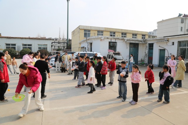 作為本次活動(dòng)的重頭戲,“ 隔空拋物”比賽備受矚目。3月8日下午,40多個(gè)孩子聚集在多功能廳門(mén)口,嘰嘰喳喳好不熱鬧。比賽規則簡(jiǎn)單卻充滿(mǎn)挑戰:孩子面對家長(cháng)站立,孩子將手中的乒乓球向前拋出,家長(cháng)用手中的筐子接住。孩子們或緊張專(zhuān)注,或俏皮搞怪,家長(cháng)們則全神貫注,力求精準接住。有的家庭配合默契,連續接中多次,贏(yíng)得陣陣掌聲;有的家庭雖屢次失誤,卻依然笑聲不斷。媽媽們表示:“平時(shí)工作忙,很少有機會(huì )和孩子一起玩游戲。這次活動(dòng)不僅讓我們感受到合作的樂(lè )趣,更拉近了彼此的距離?!?