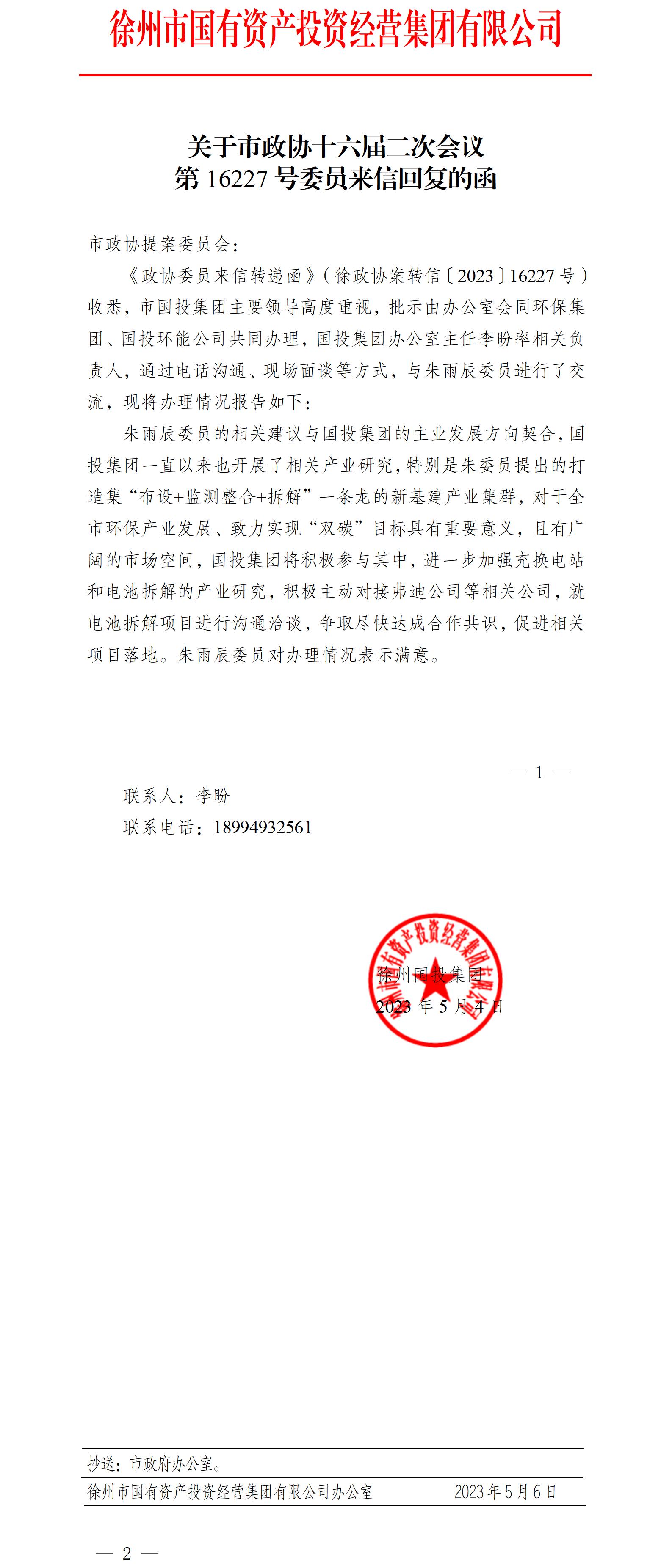 關(guān)于市政協(xié)十六屆二次會(huì )議第16227號委員來(lái)信回復的函