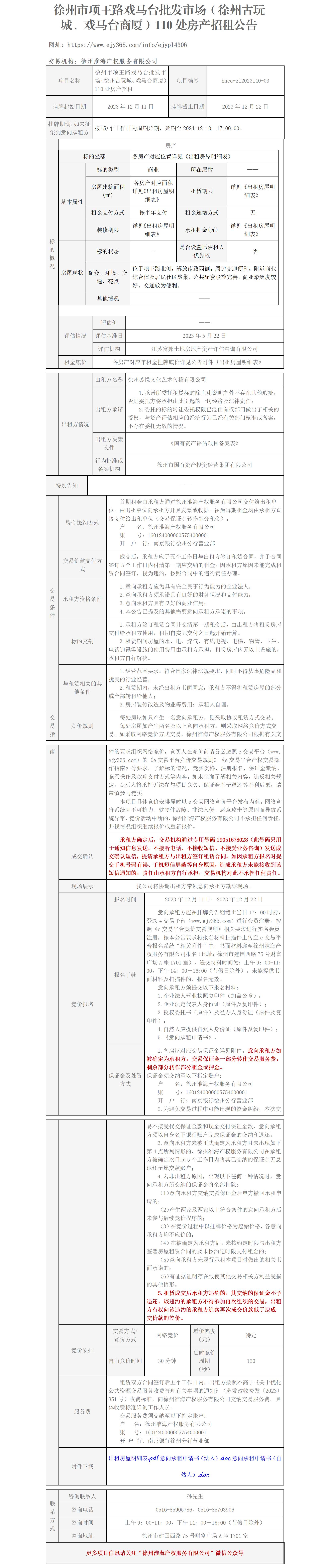 徐州市項王路戲馬臺批發(fā)市場(chǎng)(徐州古玩城、戲馬臺商廈)110處房產(chǎn)招租公告