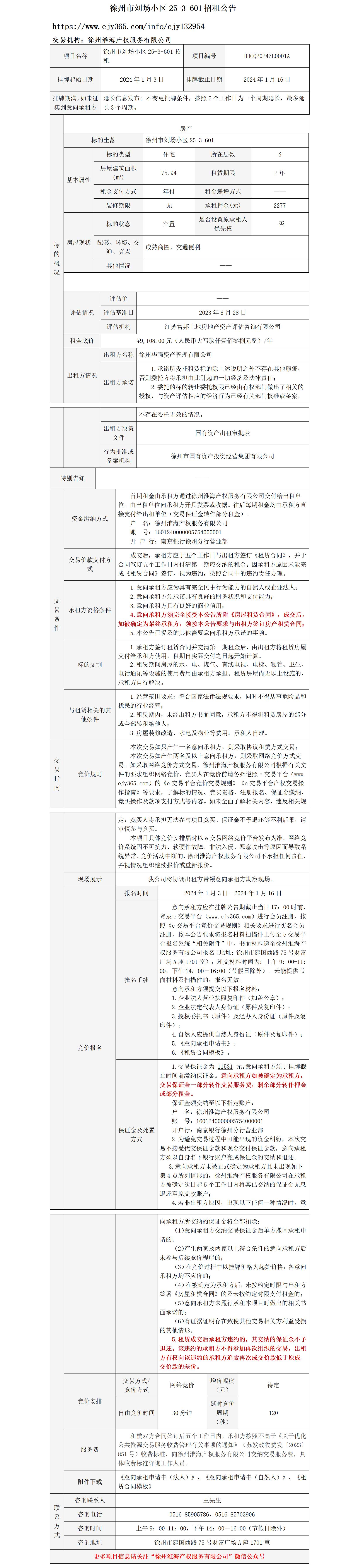徐州市劉場(chǎng)小區25-3-601招租公告