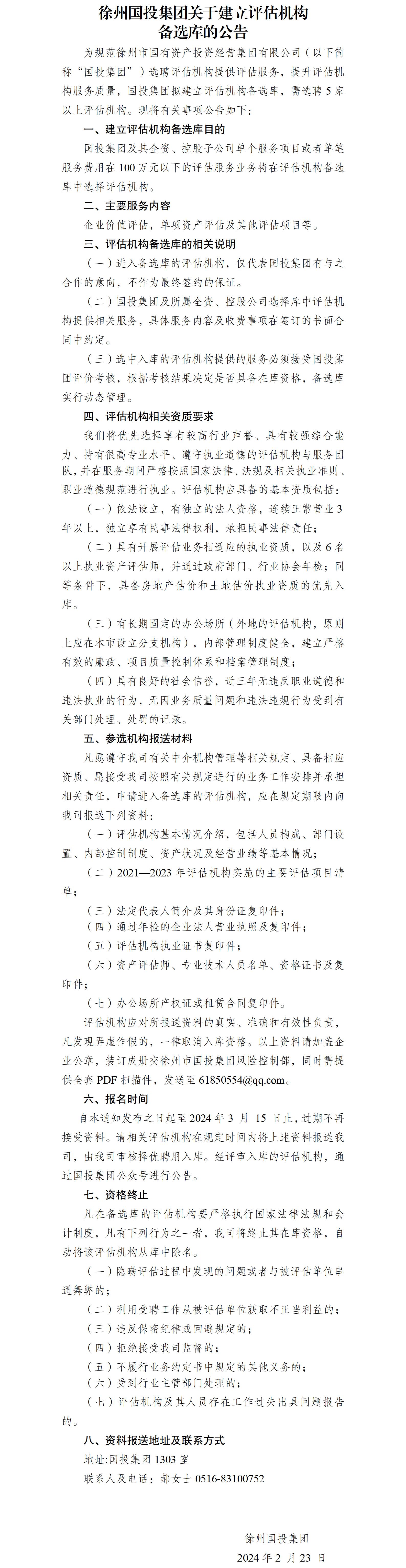 關(guān)于成立國投集團評估師事務(wù)所備選庫的公告