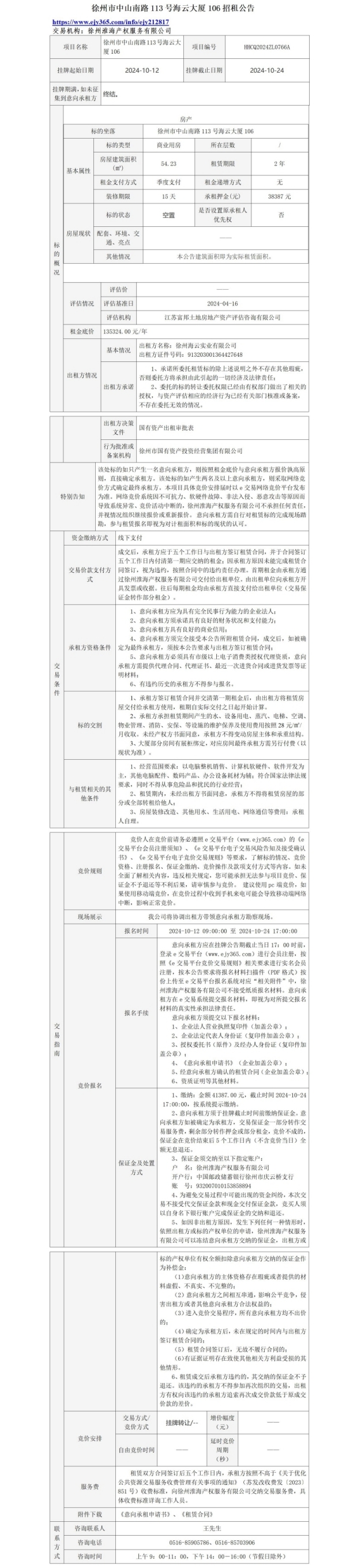江蘇省徐州市云龍區中山南路65號輕工大樓1003-1004招租公告