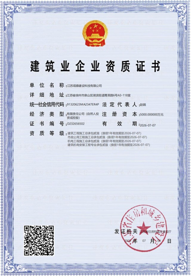 江蘇觀(guān)泰建設科技有限公司供應商入庫邀請