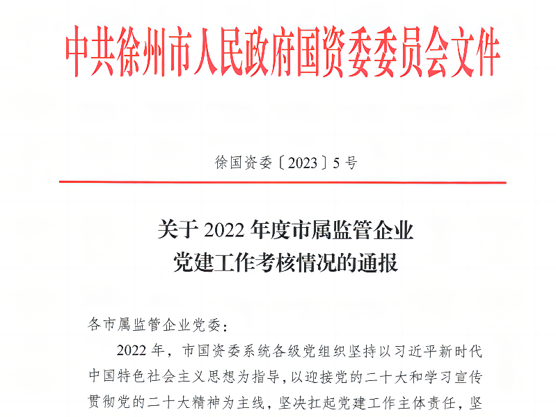 1月30日,徐州市委、市政府召開(kāi)高質(zhì)量發(fā)展大會(huì ),會(huì )議表彰了一批2022年度考核先進(jìn)單位,國投集團榮獲位列綜合考核市屬?lài)衅髽I(yè)第一等次,登上2022年度高質(zhì)量發(fā)展光榮榜。2022年,國投集團堅定貫徹落實(shí)“疫情要防住、經(jīng)濟要穩住、發(fā)展要安全”的重大要求,根據市委、市政府“發(fā)展…