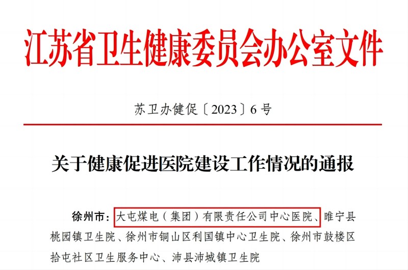 喜報!大屯煤電公司中心醫院被確定為省健康促進(jìn)醫院