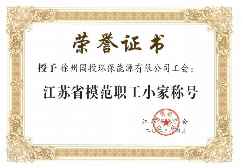 國投環(huán)能公司工會(huì )榮獲“江蘇省模范職工小家”榮譽(yù)稱(chēng)號
