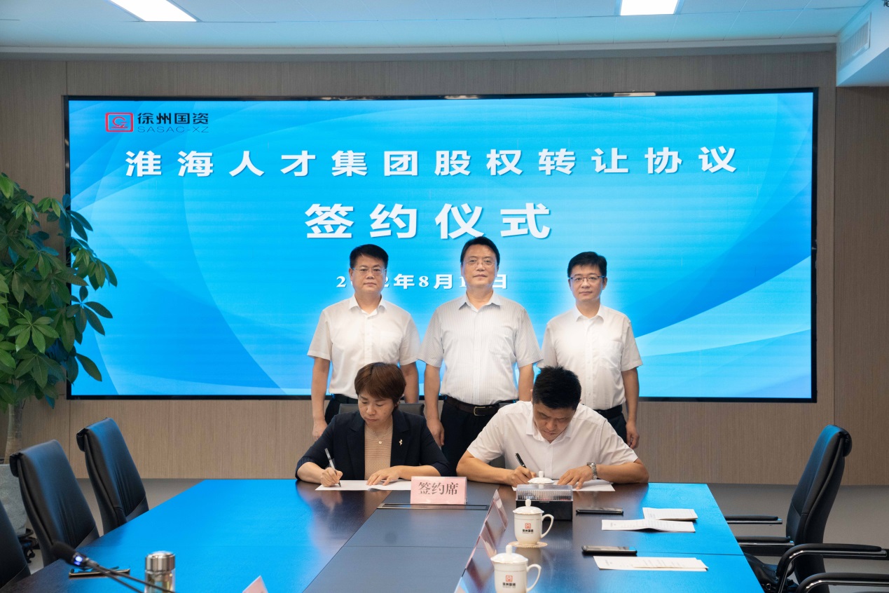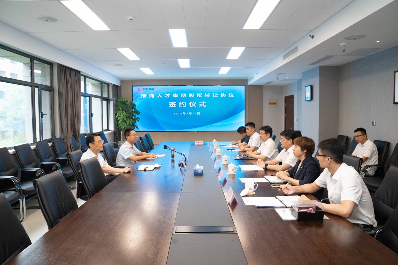 市國資委產(chǎn)權處介紹了淮海人才集團凈資產(chǎn)審計及人員選崗等情況。國投集團和國盛集團簽署了股權轉讓協(xié)議,并進(jìn)行了印鑒交接。