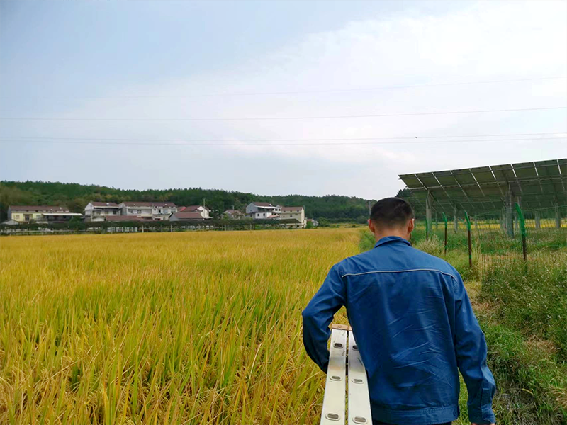 太湖鑫能電站位于安慶山區,總裝機容量2萬(wàn)千瓦,占地面積647畝,分別在三個(gè)不同地方,區域跨度大、道路條件差,有些光伏區甚至無(wú)法通車(chē),只能攜帶沉甸甸的維修設備徒步前行,身體和設備維修都面臨著(zhù)極大考驗。10月1日上午11時(shí),驕陽(yáng)似火,“秋老虎”的回歸使氣溫重返36度。電站班長(cháng)謝文理帶領(lǐng)巡檢人員走在狹窄的田埂上,厚重的工作服下早已滲滿(mǎn)了汗水,他們已經(jīng)徒步巡檢了3公里的線(xiàn)路,走在最前面的謝文理在匯報完工作進(jìn)度后,轉頭對同行人員說(shuō)“12點(diǎn)前必須把這個(gè)區域仔細巡檢一遍,下午再去剩下的區域”。說(shuō)著(zhù)他加快了腳步,一行人在泥濘的地面上留下了一串串深深的腳印。
