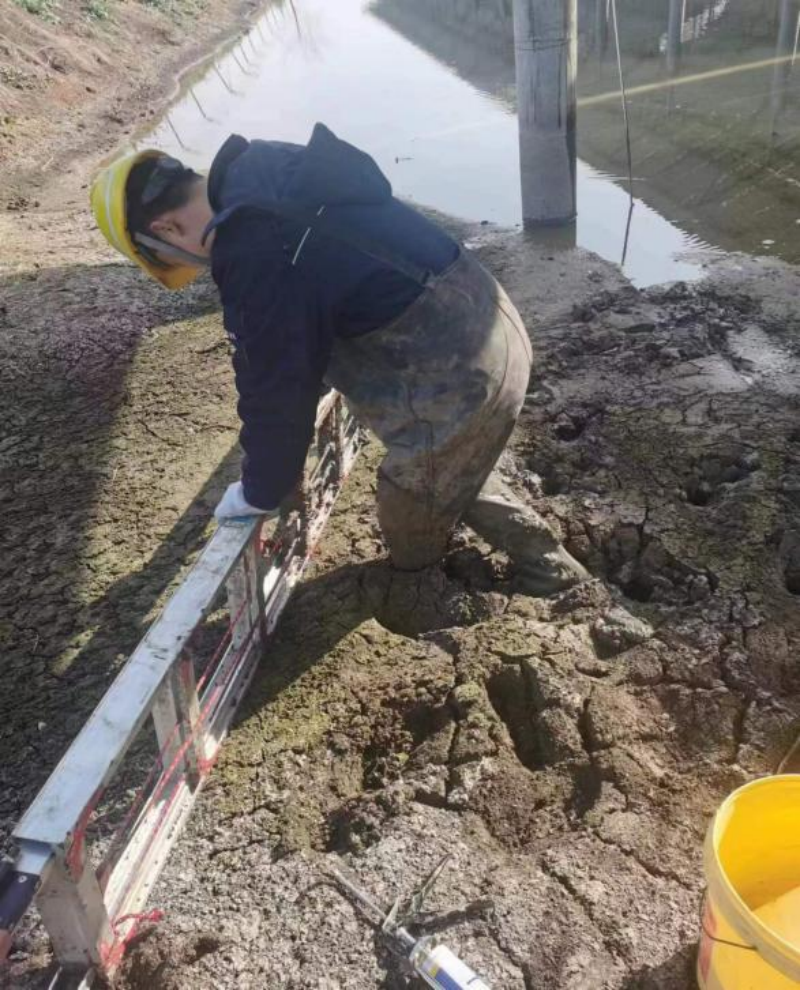 冬日的阜南縣格外寒冷,車(chē)輪壓過(guò)地面殘留的積雪發(fā)出咯吱咯吱的聲響,路兩旁的枯枝在風(fēng)中搖晃。阜南電站是“農光互補”光伏項目,裝機容量100MW,由王化鎮、于集鄉、地城鎮三個(gè)地塊組成,劉忠保在這幾條熟悉的路線(xiàn)上不知道往返了多少趟。下車(chē)后,冷風(fēng)吹得劉忠保打了個(gè)寒顫,裹緊了身上的工作服,匆匆換上了水褲,背著(zhù)裝備走向了光伏區。由于特殊的地理環(huán)境,阜南電站部分光伏區遍布著(zhù)淤泥,踩在半人之高的淤泥中每走一步就會(huì )留下一個(gè)深深的泥坑。等到故障處理結束,劉忠保和同事已經(jīng)在零下的水溫里泡了兩個(gè)小時(shí),上岸后,他不停揉搓已經(jīng)凍得麻木的手。