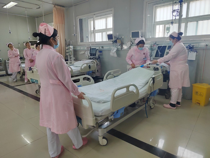 重癥醫學(xué)科模擬呼吸機發(fā)生氧氣供應不足出現報警,無(wú)法正常工作的場(chǎng)景。當班護士即刻檢查儀器,此時(shí)患者血氧飽和度正在下降,立即呼叫醫生和另一名護士進(jìn)行緊急處理,遵醫囑立即脫機,連接備用氧氣瓶及簡(jiǎn)易呼吸器進(jìn)行輔助通氣,之后患者血氧飽和度上升,生命體征逐漸平穩。隨后上報護士長(cháng),聯(lián)系后勤保障部進(jìn)行檢查維修,并上報不良事件。骨科應急預案演練主要模擬責任護士在巡回病房時(shí),發(fā)現正在輸血的患者突然出現寒戰癥狀的場(chǎng)景。責任護士立即停止輸血并更換了輸血袋及輸血器,通知值班醫生和護士長(cháng),緊急啟動(dòng)輸血反應應急預案,并上報不良事件。演練結束后護理部、護士長(cháng)及護理骨干對應急預案程序、制度落實(shí)、操作規范、人文關(guān)懷等方面進(jìn)行綜合評價(jià)。