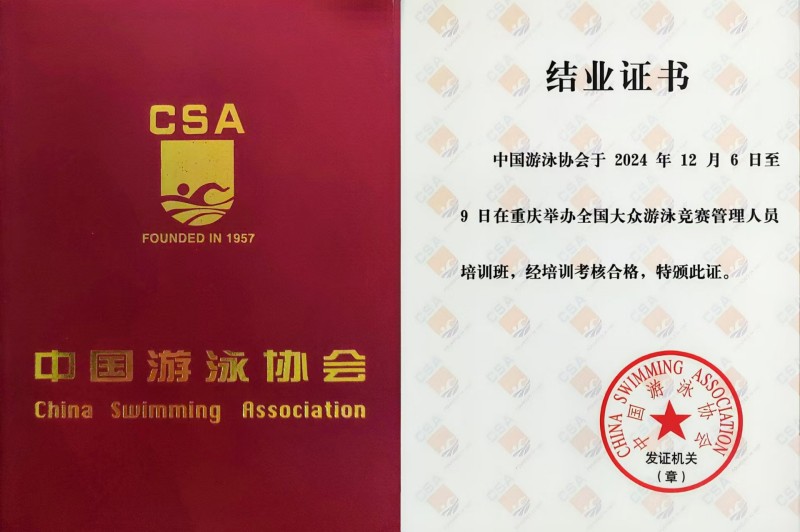 12月6-9日,國體徐州競賽組織管理人員參加中國游泳協(xié)會(huì )組織的“2024年全國大眾游泳競賽管理人員培訓”,取得結業(yè)證書(shū),獲得了承辦體育總局游泳中心、中國游泳協(xié)會(huì )主辦的大眾游泳比賽的資質(zhì)。