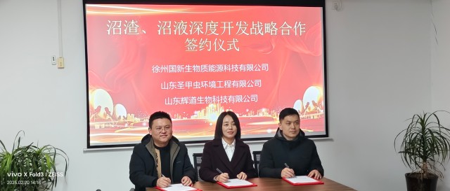 近日,徐州國新生物質(zhì)能源科技有限公司與山東圣甲蟲(chóng)環(huán)境工程有限公司、山東輝道生物科技有限公司在國新公司二樓會(huì )議室舉行沼渣、沼液深度開(kāi)發(fā)戰略合作協(xié)議簽約儀式。國新公司班子成員,圣甲蟲(chóng)公司、輝道公司相關(guān)人員出席活動(dòng)。