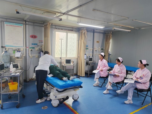 不同于單項技能比武,本次OSCE考核最大的特點(diǎn)是高度模擬臨床真實(shí)情境,強調工作的連貫性和應急判斷能力??己朔譃槿?,環(huán)環(huán)相扣。第一站,護士化身為洞察入微的“偵察兵”,在有限時(shí)間內,面對由專(zhuān)業(yè)人員扮演的“標準化病人”,進(jìn)行詳細的病史采集和精準的身體評估,此站考驗了護士的溝通技巧和觀(guān)察能力;第二站,護士化身為精準高效的“戰術(shù)家”,基于第一站的評估結果迅速提出核心護理問(wèn)題,并立即采取相應的護理措施;第三站,護士化身為沉著(zhù)果敢的“突擊隊”,面對患者病情驟然惡化,第一時(shí)間識別危急值,果斷采取心肺復蘇、急救用藥等緊急救治措施。這一站是考核的重中之重,直接檢驗護士在壓力下的心理素質(zhì)、快速反應能力和搶救技能。